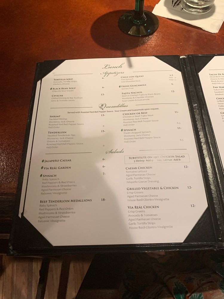 Via Real is a Tex-Mex, Mexican, and Seafood restaurant located in Irving, Texas that offers a range of amenities such as reservation options, delivery, and vegan-friendly dishes. The restaurant boasts a diverse menu, including lunch appetizers like guacamole and ceviche and lunch salads featuring beef and chicken options. Customers rave about the exceptional service and flavorful dishes, with highlights such as the filet medallion, nachos, and quesadillas. The ambiance is described as classy with indoor and outdoor seating, making it suitable for various occasions. The restaurant's unique design, upscale atmosphere, and attention to detail in both food and service leave a lasting impression on visitors. Enjoy a delightful dining experience at Via Real, where delicious Tex-Mex cuisine meets exceptional hospitality.